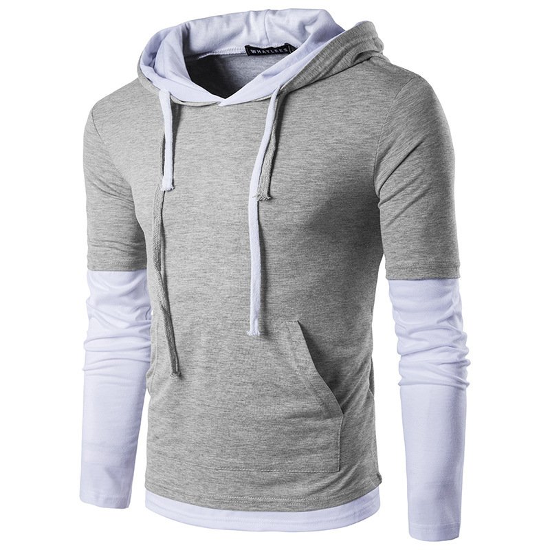 2021 new European code men's long-sleeved hooded sleeves color matching fashion slim T-shirt B26