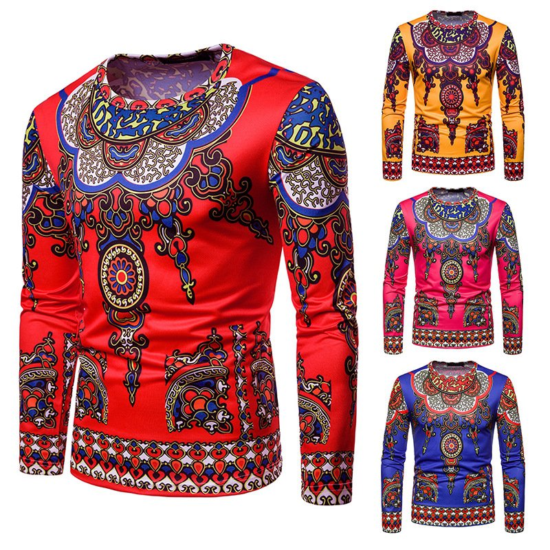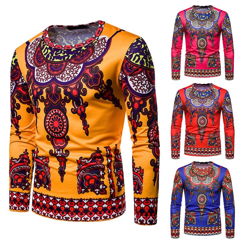 Cross-border e-commerce 3D ethnic style printing long-sleeved round neck T-shirt CT434