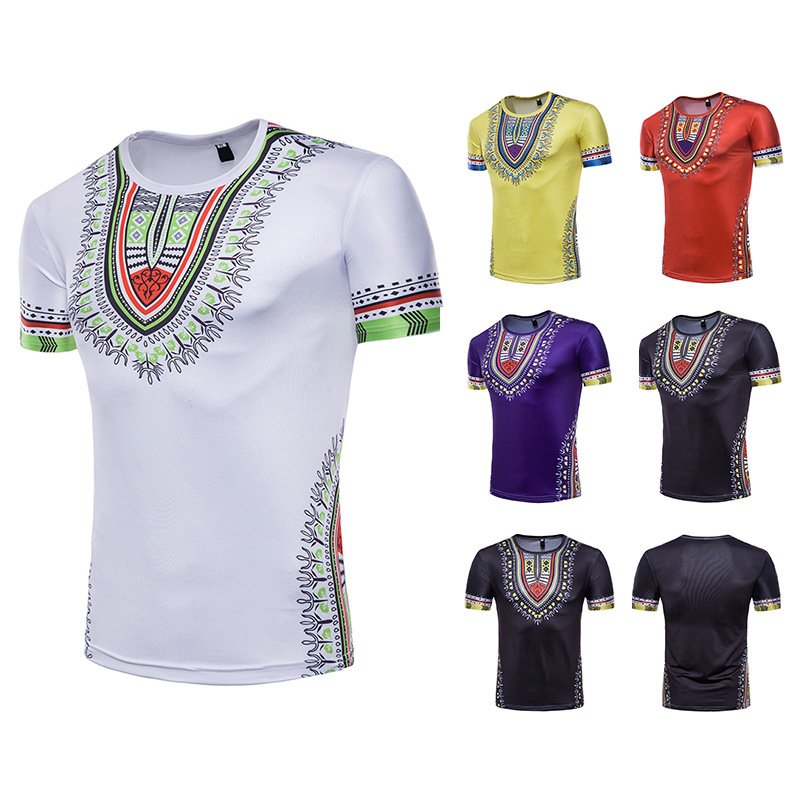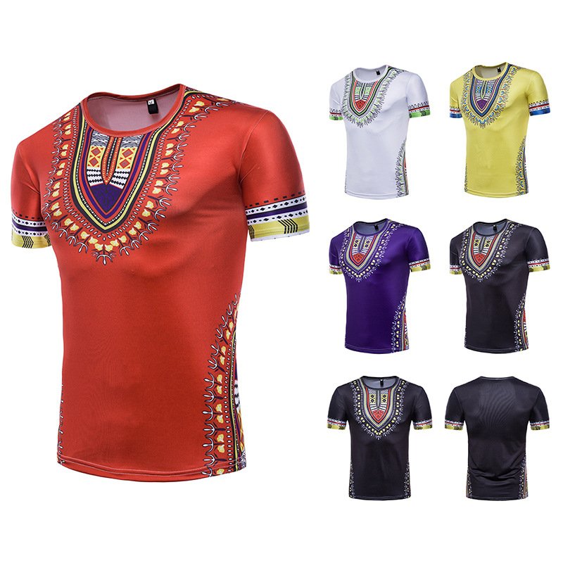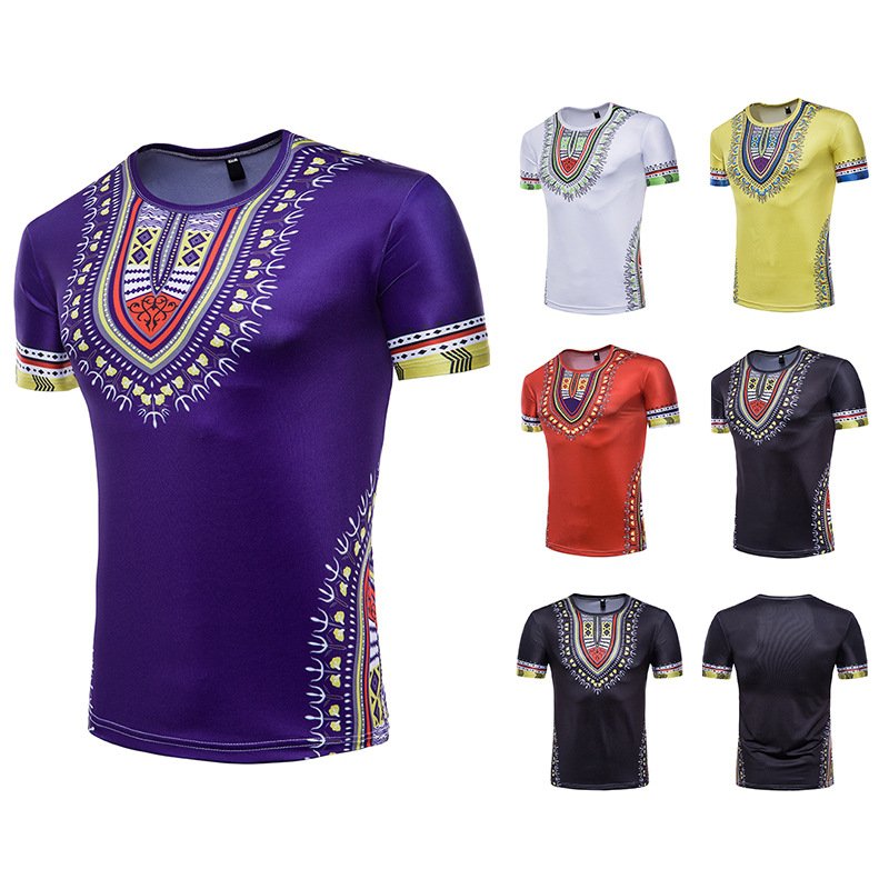 Foreign trade fashion male creative ethnic style floral 3D printing short sleeve T-shirt T404