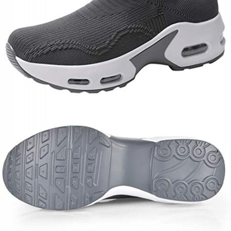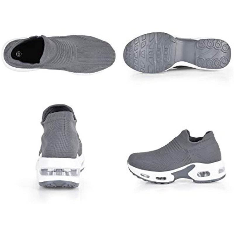 MoneRffi Womens Walking Shoes Sock Sneakers Slip On Mesh Air Cushion Platform Loafers Comfort Wedge Walking Shoes Grey