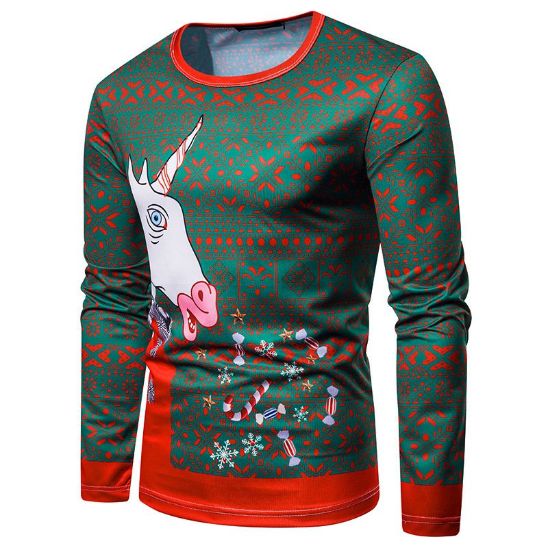 New 3D personality printing fashion men's Christmas elk pattern long-sleeved T-shirt CT480