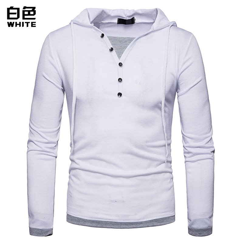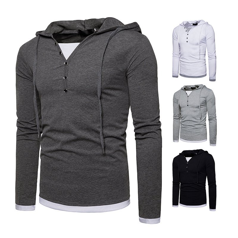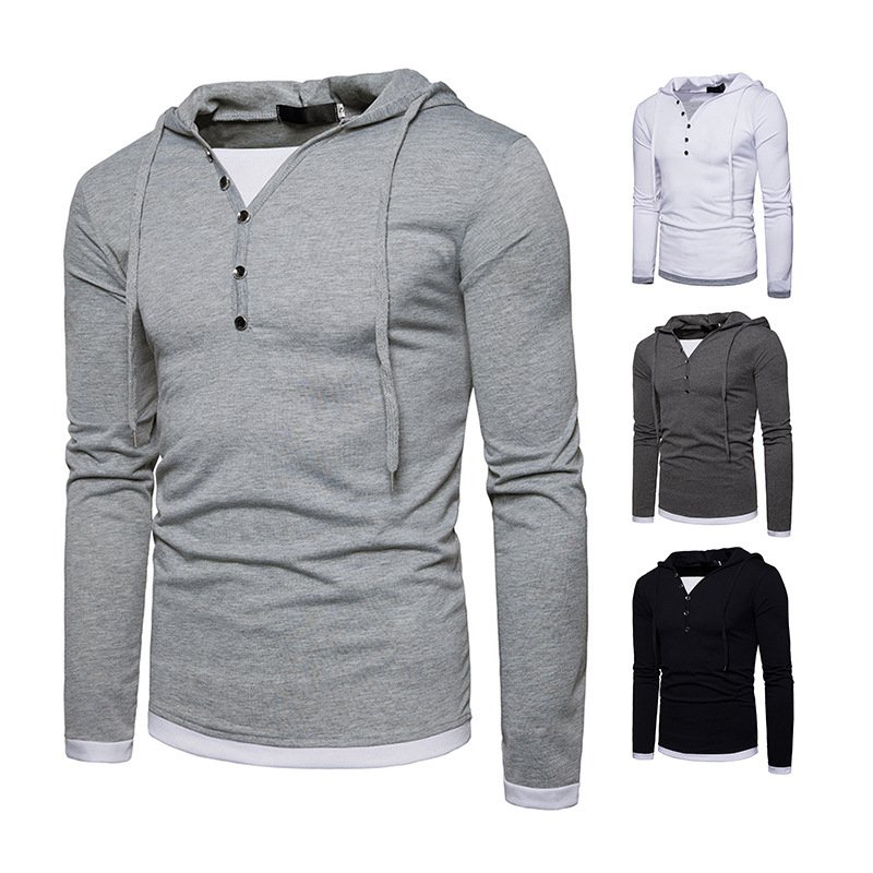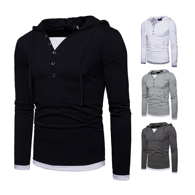 New fashion men's hooded long-sleeved stitching T-shirt sports pullover hoodie B07