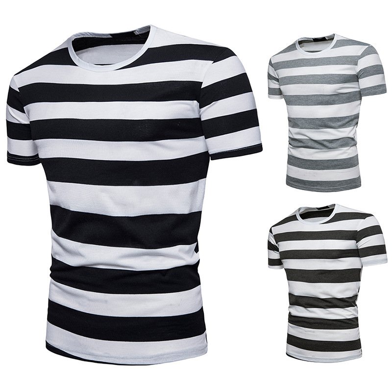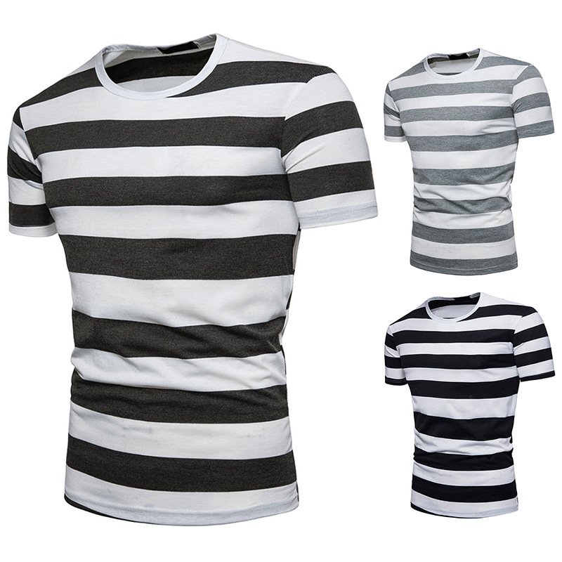 New summer men's short-sleeved T-shirt men's contrast striped slim casual t-shirt TX105