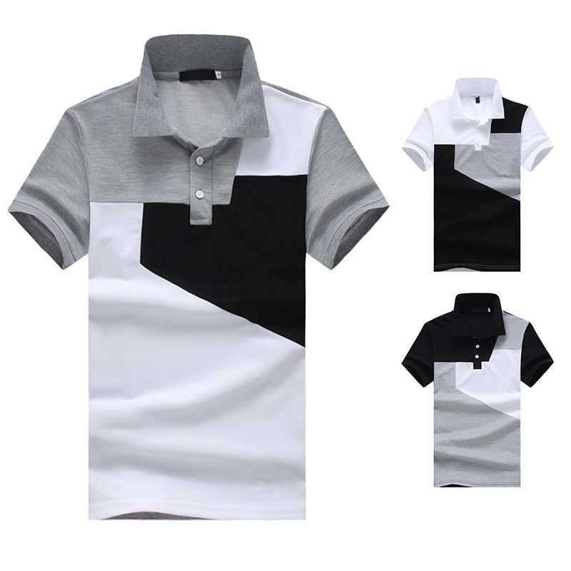 New style flat men's fashion large size color matching short sleeve POLO Q41