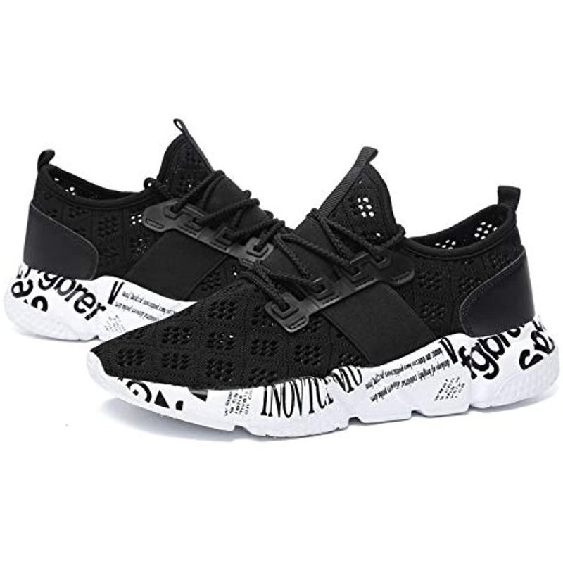 Damyuan Mens Lightweight Athletic Running Walking Gym Shoes Casual Sports Shoes Fashion Sneakers Walking Shoes Black White